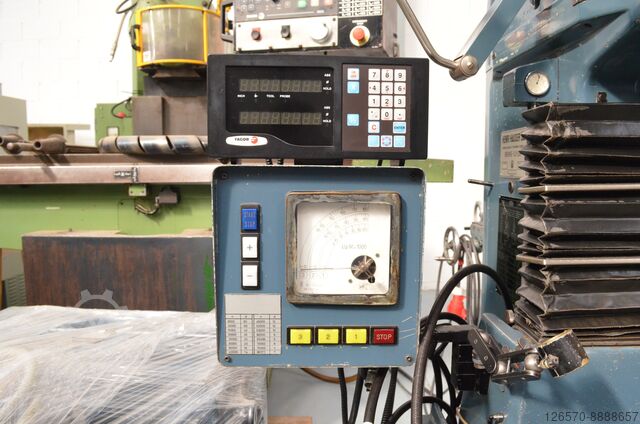 État: très bon (occasion), Année de construction: 1996, Fonctionnalité: entièrement fonctionnel, course de déplacement axe X: 650 mm, course de déplacement axe Z: 130 mm, hauteur totale: 2 750 mm, avance sur l’axe X: 1 m/min, avance sur l'axe Y: 1 m/min, avancée d'usinage axe Z: 12 m/min, largeur de la table: 630 mm, longueur de la table: 770 mm, table à broche – distance au centre: 585 mm, type de courant d'entrée: triphasé, charge de la table: 500 kg, poids total: 4 500 kg, course W: 500 mm, distance entre les montants: 750 mm, Équipement: documentation / manuel, Rectifieuse par coordonnées CNC HAUSER S40-400