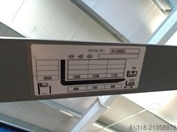 Jungheinrich ETV 214 E GE 115 – 455 DZ, chariot à mât rétractable d'occasion ; Année de fabrication : 2018 ; N° de série : 91128553 ; heures de fonctionnement : seulement 1 213 ; moteur électrique de 6,0 kW ; capacité : 1 400 kg ; mât triplex ; hauteur de levée : 4 550 mm ; longueur des fourches : 1 150 mm ; poids à vide sans batterie : 2 105 kg ; bandages avant : caoutchouc, taille 1x BA ; état des bandages arrière : 65 % ; transmission : courant triphasé ; batterie : année 2018, 48V 4EPZS 620, capacité C5 : 620 Ah ; poids de la batterie : 935 kg, 24 éléments avec un volume d'acide de 153 litres ; poids total avec batterie : 3 040 kg ; commande : joystick standard ; dimensions : longueur totale : 2 500 mm x largeur totale : 1 270 mm x hauteur fermée : 2 200 mm ; toit de protection conducteur ; levée libre totale ; chargeur de batterie modèle SLT150 année 2018 avec n° de série : B6835278.