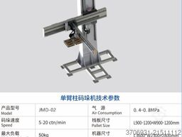 Le système comprend un palettiseur à colonne unique, un distributeur de palettes, une tête de préhension et des convoyeurs, et convient à de nombreux types de produits tels que les cartons, caisses plastiques et marchandises emballées.