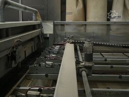 La scie est entretenue régulièrement et en parfait état de fonctionnement. Elle est utilisée quotidiennement en équipe unique. Vente pour cause de transition vers un système de production plus récent. Toujours fonctionnelle, elle peut être vue en service jusqu'au 10 octobre 2025. Fourni avec un jeu de lames de scie et un pré-découpeur. Option d'achat d'un lève-panneaux à vide visible sur la vidéo.